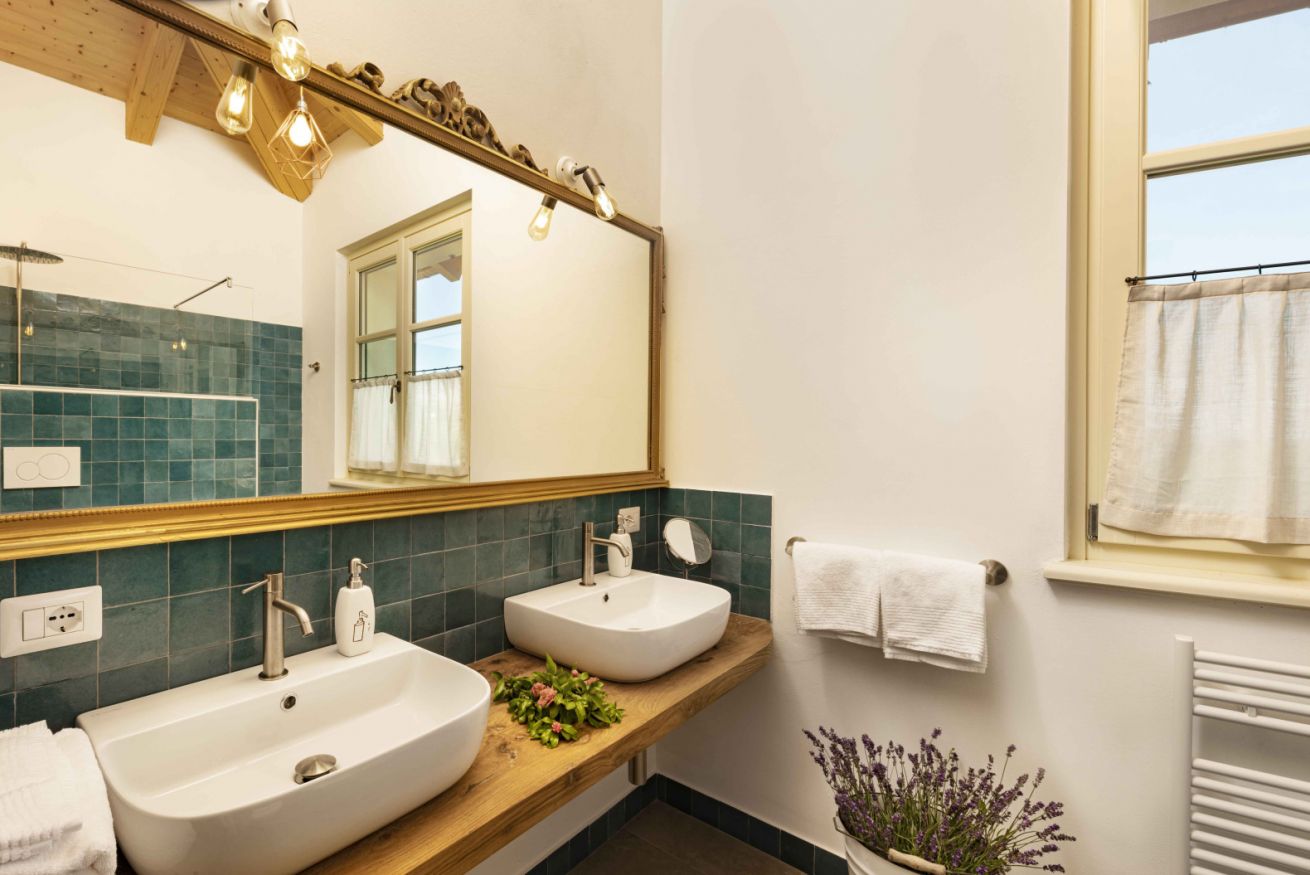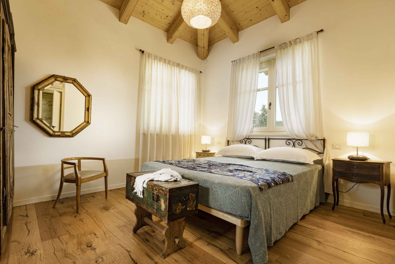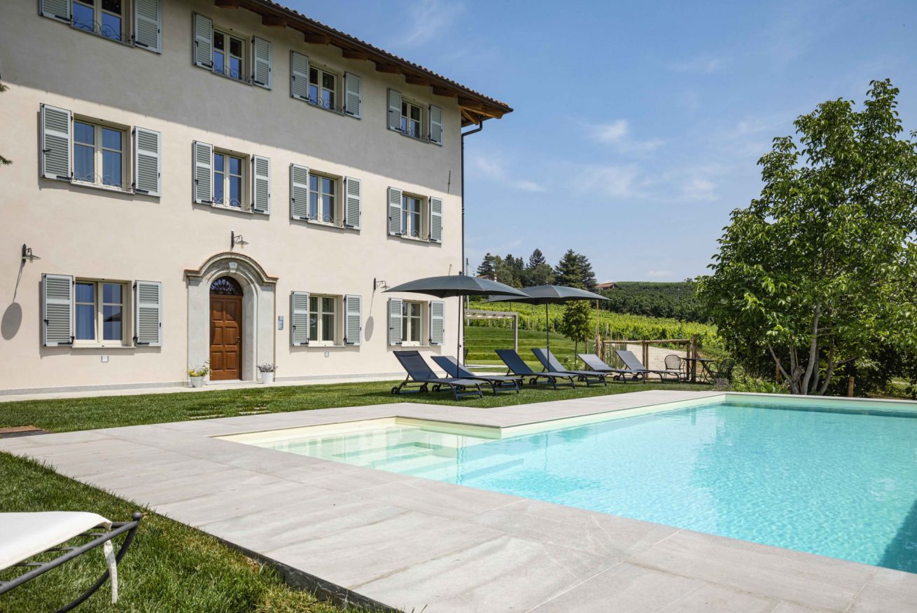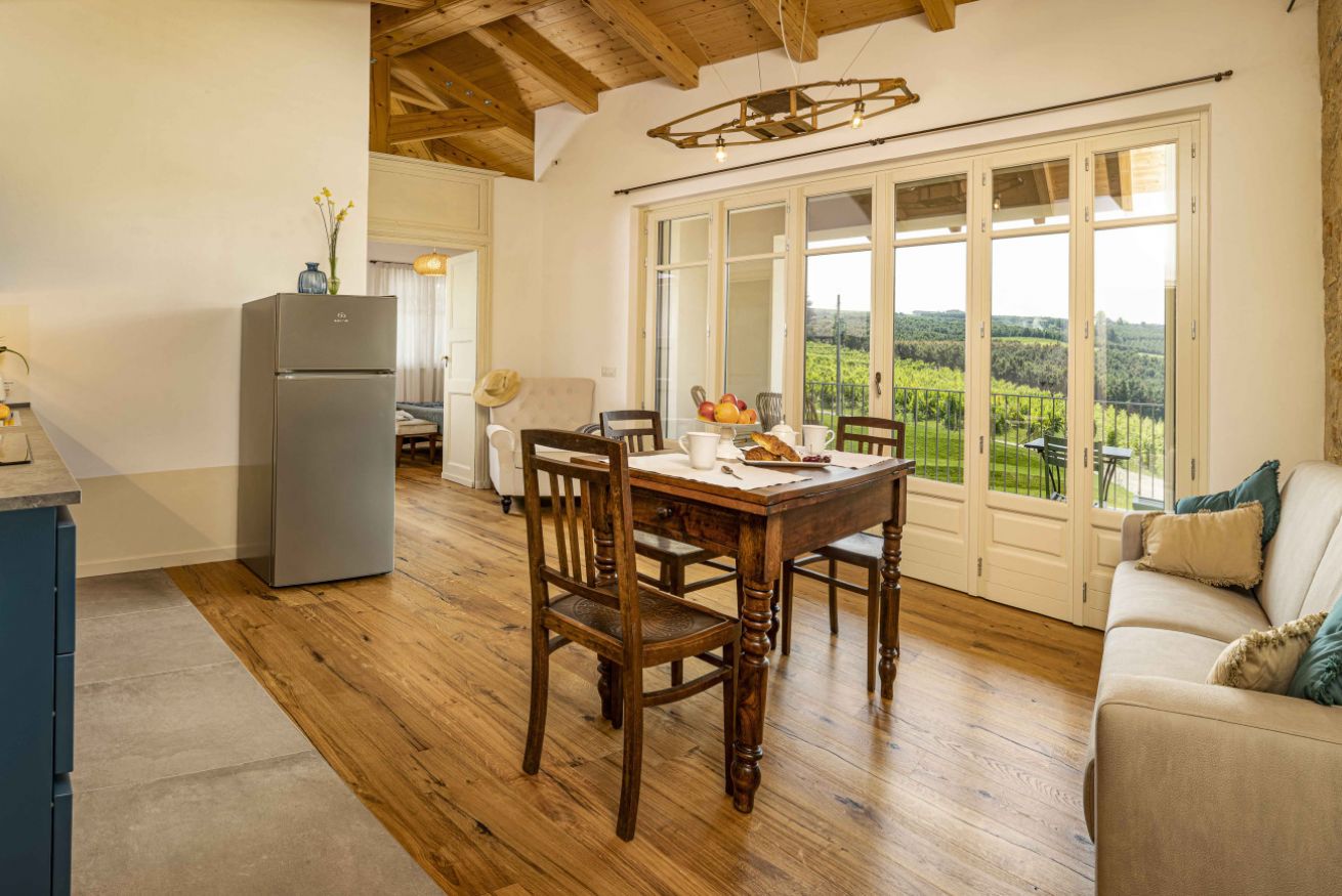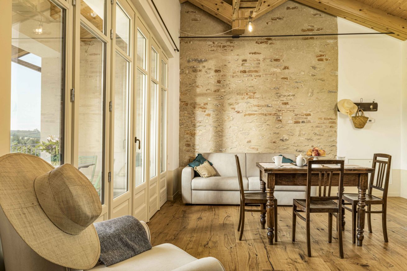 Questo appartamento alto di ca 90mq con soffitto e pavimenti in legno, una volta era il fienile. E' perfetto per una coppia con bambini o due coppie di amici; composto da due grandi e luminose camere con una vetrata di 3,60m di larghezza. Facilmente accessibile grazie all'ascensore, è dotato di una cucina ben equipaggiata, grande zona living e camera da letto separate, 2 bagni ed un ampio terrazzino coperto con vista sui nostri vigneti per un soggiorno esclusivo, con infinity pool panoramico.